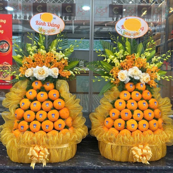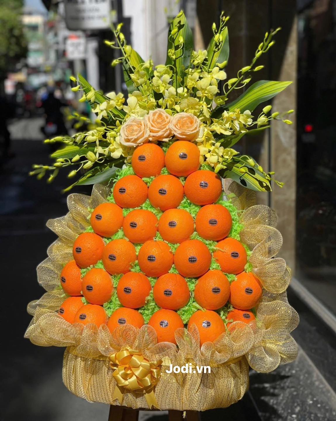 Giỏ trái cây Kính Lễ kết hoa lan BDG26.H02 đặc biệt phù hợp những dịp Lễ trang trọng. Với 6 tầng trái, kết hoa phía trên, giỏ cao ngang người và nặng trên 10kg.