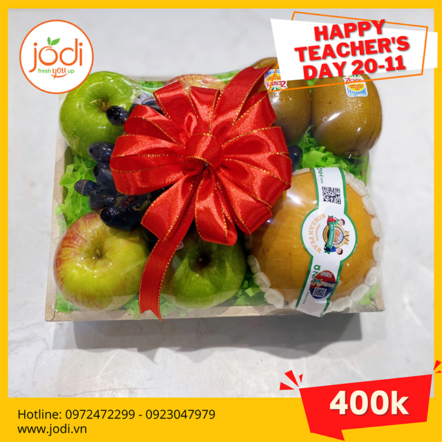 Nhân ngày 20/11 đang cận kề, Jodi xin giới thiệu những mẫu hộp trái cây vừa đẹp sang tinh tế vừa mang ý nghĩa thiết thực. Với tiêu chí đặt chất lượng lên hàng đầu, hộp quà trái cây Jodi chắc chắn sẽ là món quà hoàn hảo giúp bạn thể hiện đầy đủ thành ý tới các thầy cô giáo.