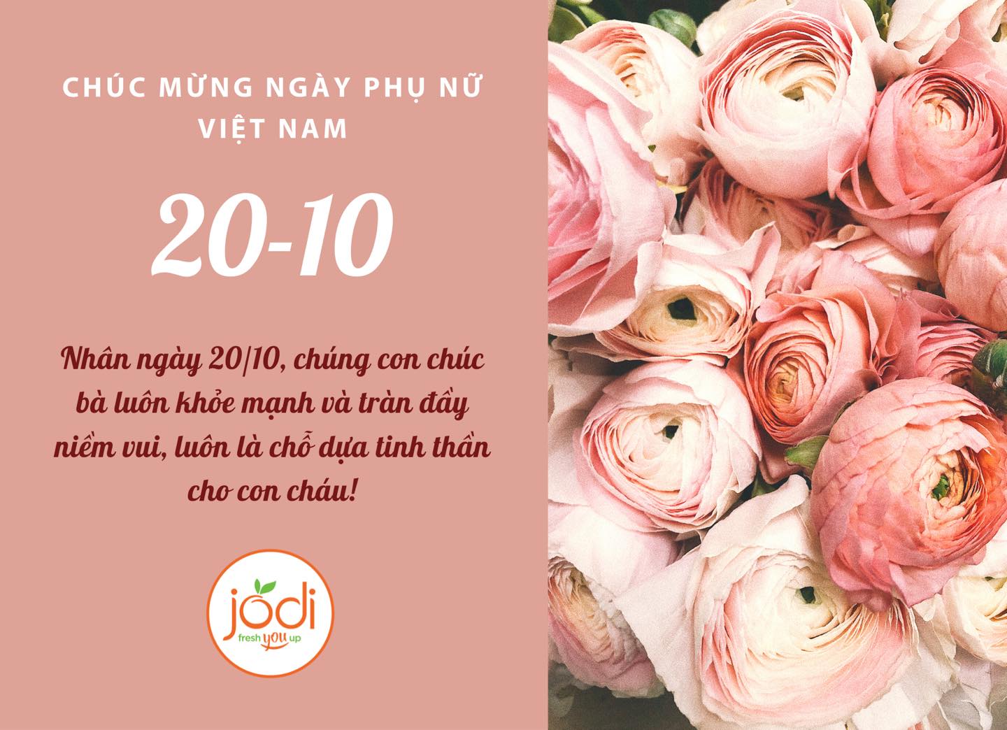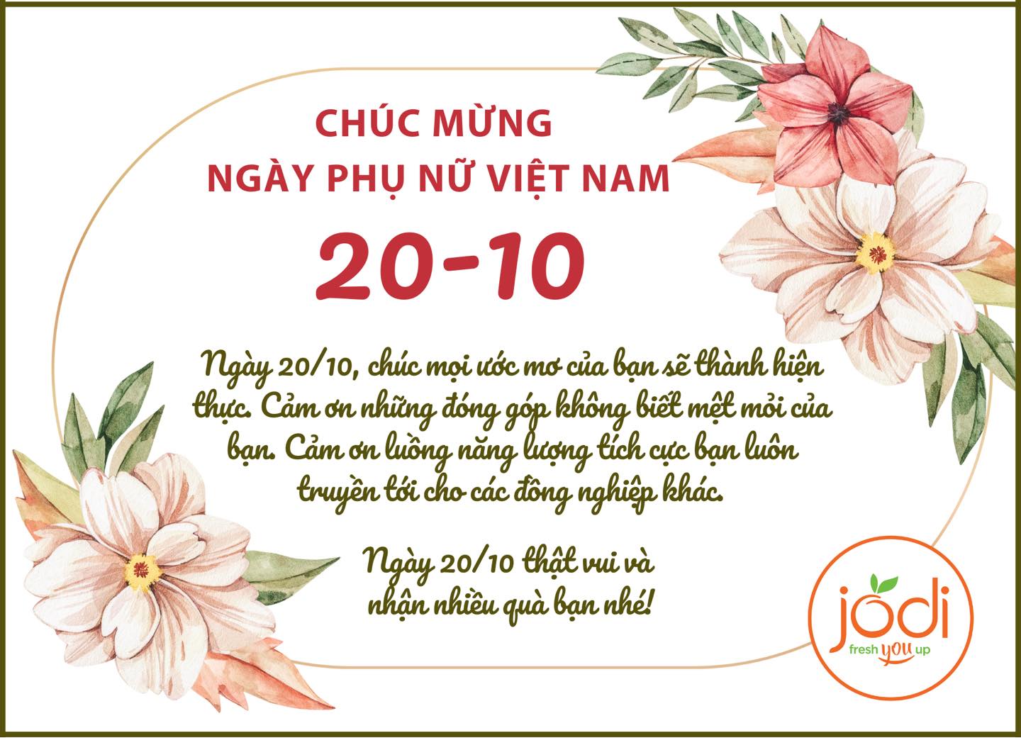 Mừng Ngày Phụ Nữ Việt Nam 20/10, chọn được món quà ý nghĩa xong cũng cần chọn thêm tấm thiệp đẹp, ấn tượng nữa để phần quà mừng được trọn vẹn. Hãy tham khảo những mẫu thiệp chúc mừng Ngày Phụ Nữ Việt Nam 20/10 của Jodi năm nay nhé!